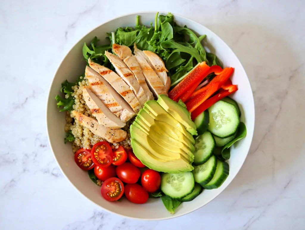 • Proteínas magras: Incorporar fuentes de proteína como el pollo, el pavo o el pescado es fundamental para mantener la masa muscular y la saciedad.